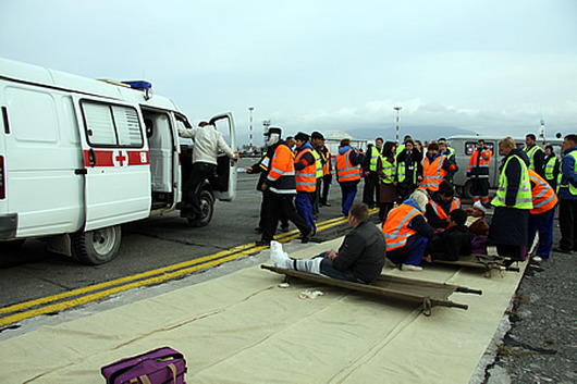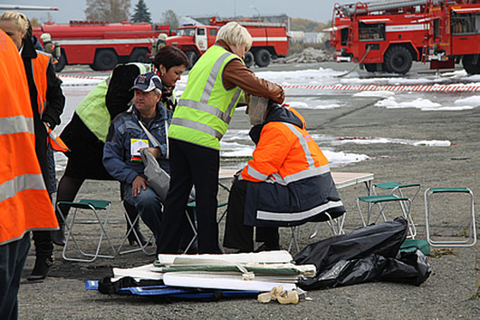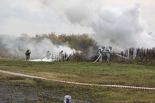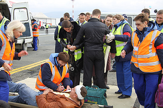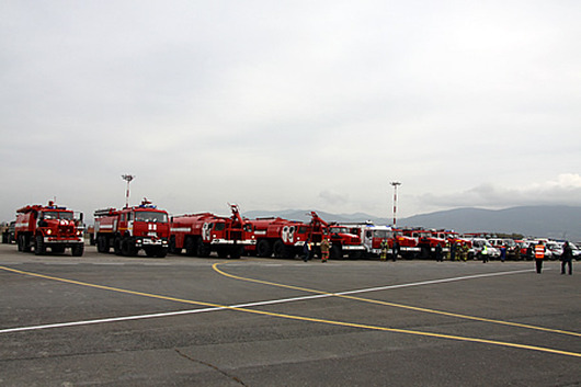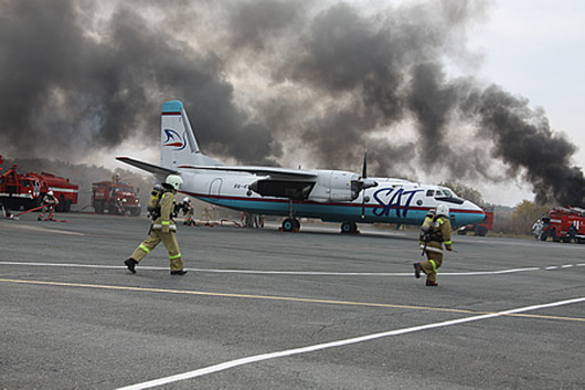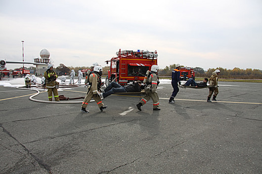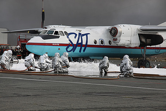 Cегодня, 12 октября 2011 года, в аэропорту «Южно‐Сахалинск» прошли комплексные учения аварийно‐спасательной команды (АСК) аэропорта и взаимодействующих подразделений Южно‐Сахалинска и области.